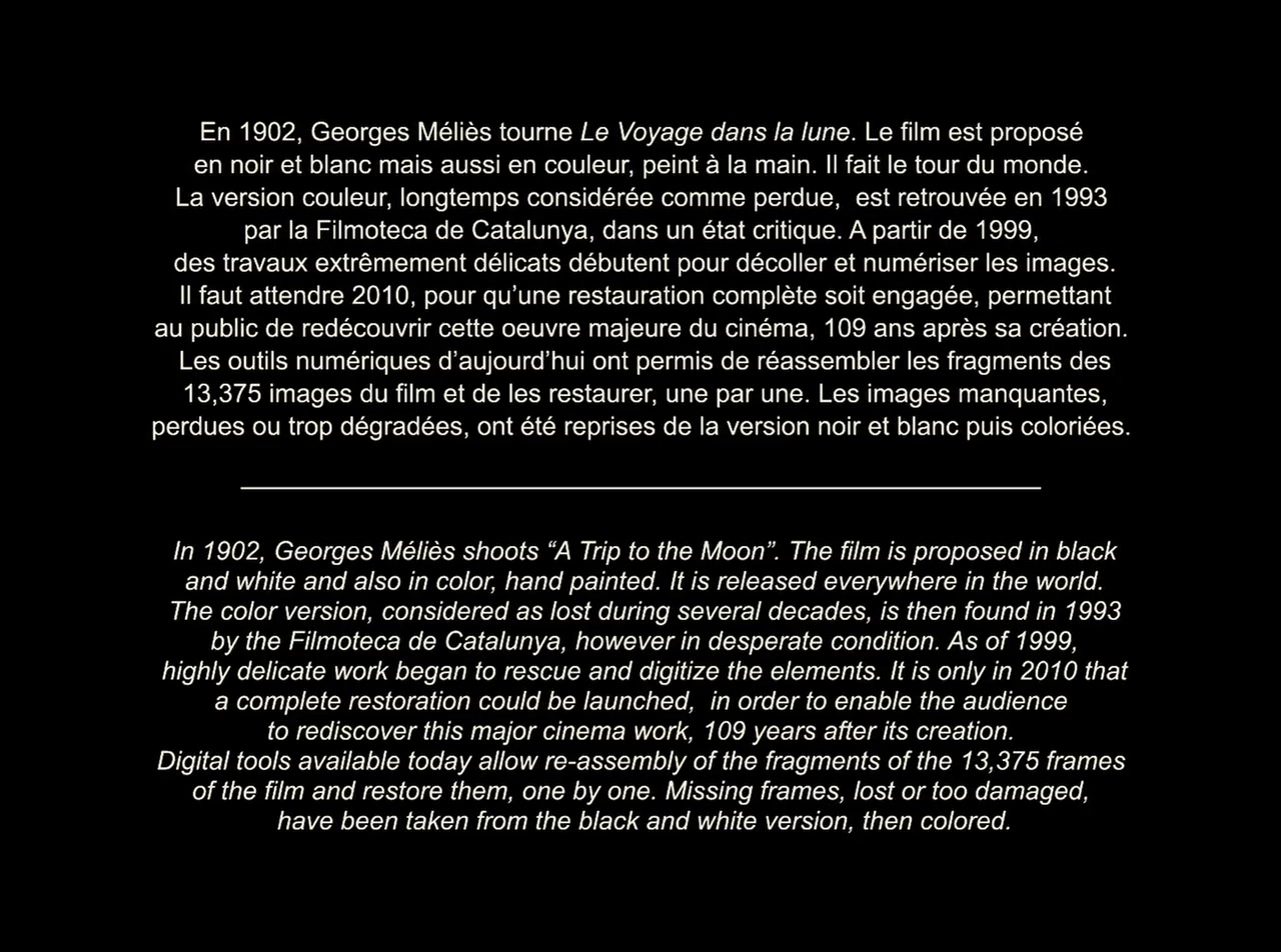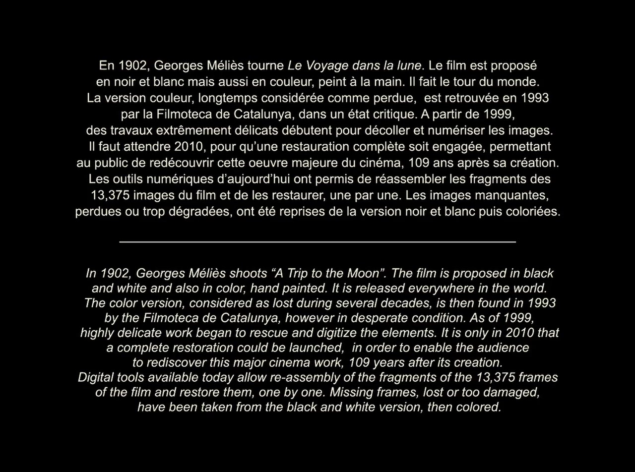 Professor Barbenfouillis and five of his colleagues from the Academy of Astronomy travel to the Moon aboard a rocket propelled by a giant cannon. Once on the lunar surface, the bold explorers face the many perils hidden in the caves of the mysterious planet.