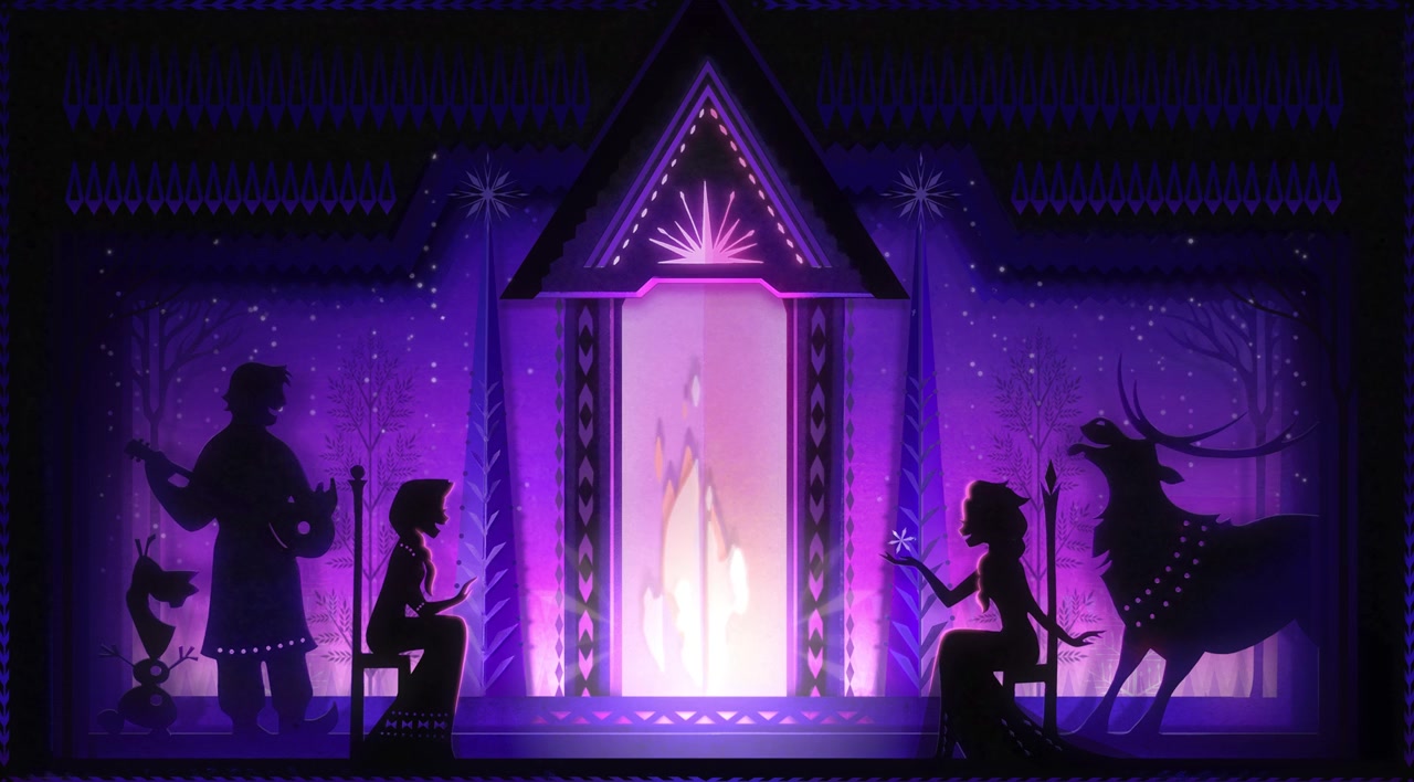 Hand-crafted from paper art by Brittney Lee, Walt Disney Animation Studios’ acclaimed visual development artist on “Frozen” and “Frozen 2,” this warm and inviting hearthside scene sets a festive holiday mood. Stylized cut-out paper flames combine with imaginative visual effects (including a touch of snow provided by Elsa) and silhouetted images of Anna, Elsa, Olaf, Kristoff, and Sven to add to your holiday fun and enjoyment.