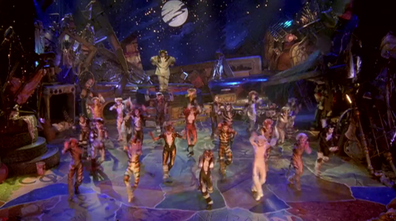 "Jellicle" cats join for a Jellicle ball where they rejoice with their leader, Old Deuteronomy. One cat will be chosen to go to the "Heavyside Layer" and be reborn.