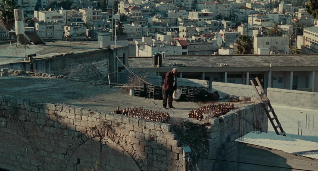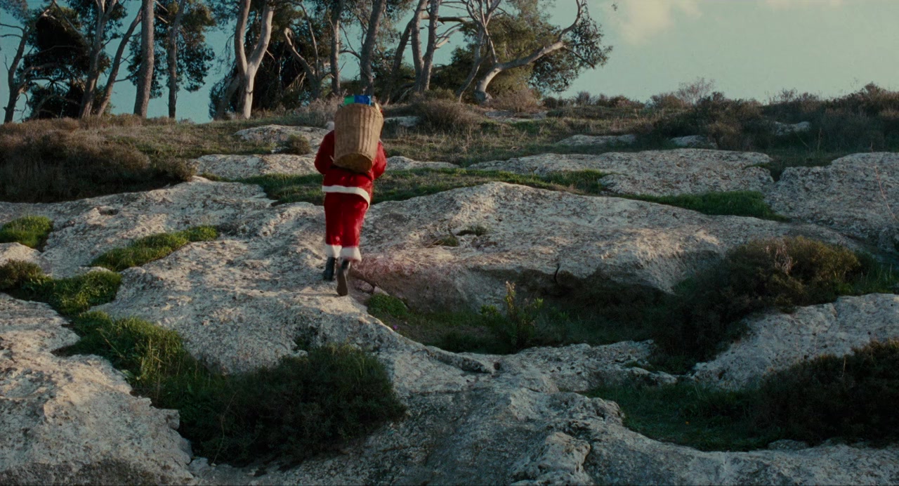 Santa Claus tries to outrun a gang of knife-wielding youth. It's one of several vignettes of Palestinian life in Israel - in a neighborhood in Nazareth and at Al-Ram checkpoint in East Jerusalem. Most of the stories are droll, some absurd, one is mythic and fanciful; few words are spoken. A man who goes through his mail methodically each morning has a heart attack. His son visits him in the hospital. The son regularly meets a woman at Al-Ram; they sit in a car, hands caressing. Once, she defies Israeli guards at the checkpoint; later, ninja-like, she takes on soldiers at a target range. A red balloon floats free overhead. Neighbors toss garbage over walls. Life goes on until it doesn't.