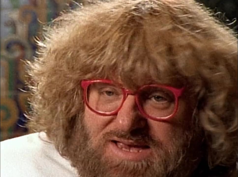 Here's a few things one learns about this Mr. Vilanch from watching this movie: He has bushy hair -- a massive mop of curls. (Incidentally, he looks to me a bit like Michael Moore were Moore to don a Harpo Marx wig.) This Bruce character, we're informed, as a youth performed in school plays, later majored in theater and journalism, for a while wrote for a college paper, and eventually landed a job after college working for the Chicago Tribune. As a movie critic and columnist, part of his job involved interviewing celebrities. This bit of back story which the doc provides was most appreciated.
