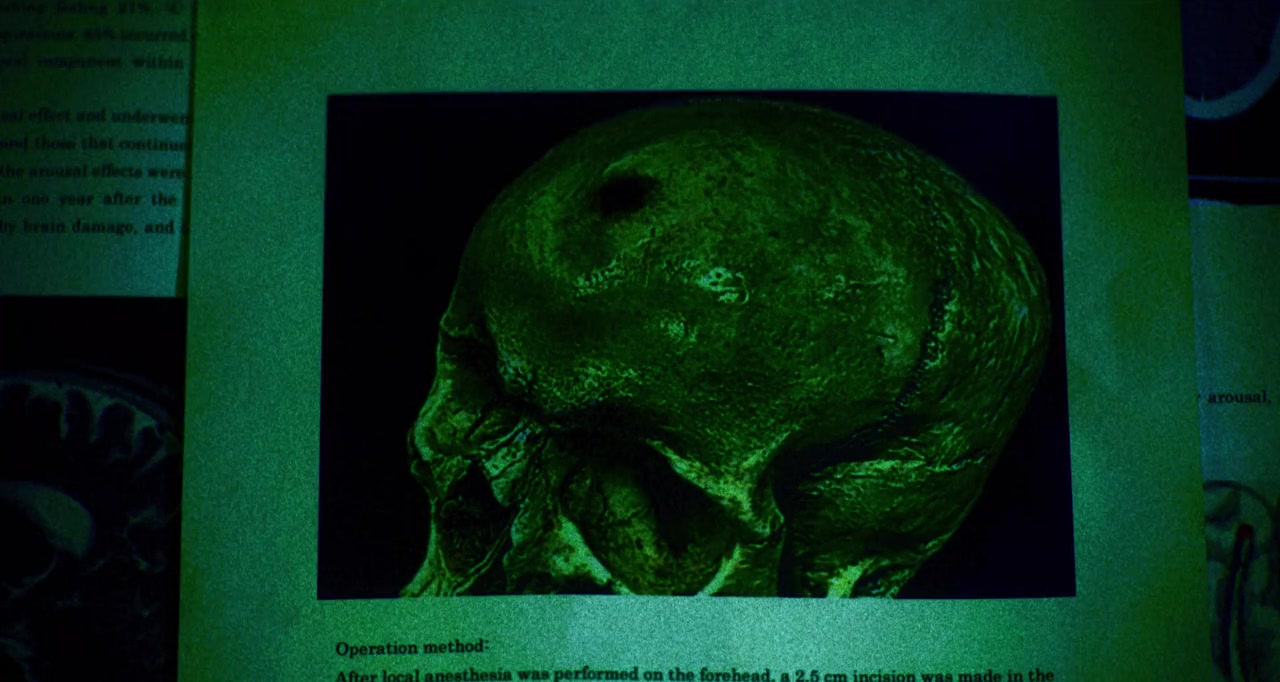 A homeless man meets a medical school student who pays him to volunteer for a surgical procedure known as trepanation, drilling a hole in his skull, which ends up giving him the ability to communicate with the dark side of people’s subconscious minds.