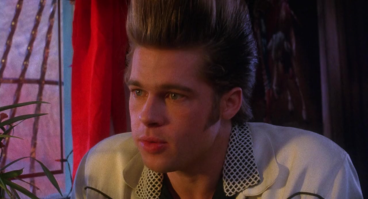 Johnny Suede (Brad Pitt) longs to be a teen-age idol like Ricky Nelson. He has a pair of black suede shoes, an impressive pompadour, a guitar, and some pals who will play backup for him. Yet he doesn't have much talent or drive.