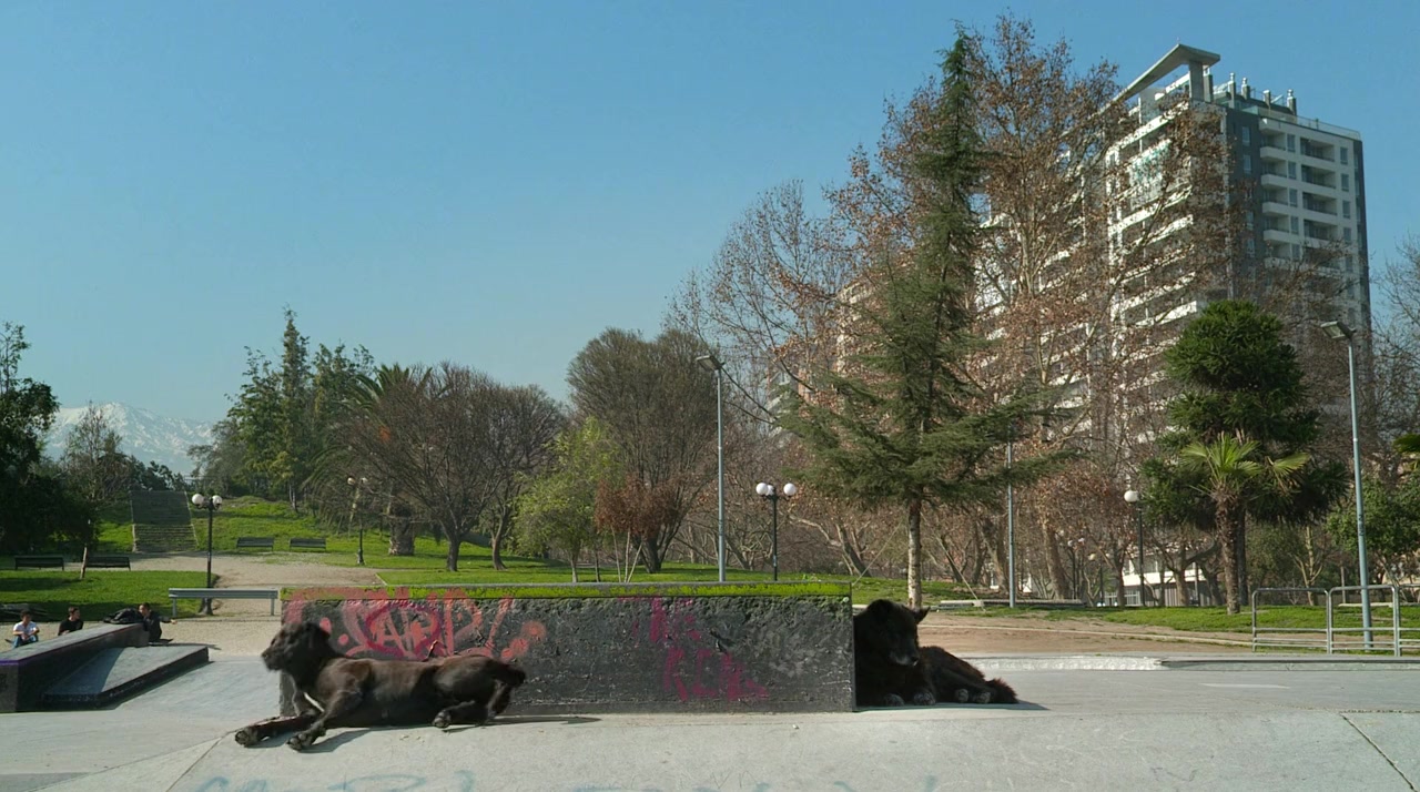 Chola and Fútbol are a couple of street dogs that live in the Los Reyes skatepark. A microcosm is organized around them, composed of things, animals and young adolescents in conflict with an adult world that they reject but are required to enter.