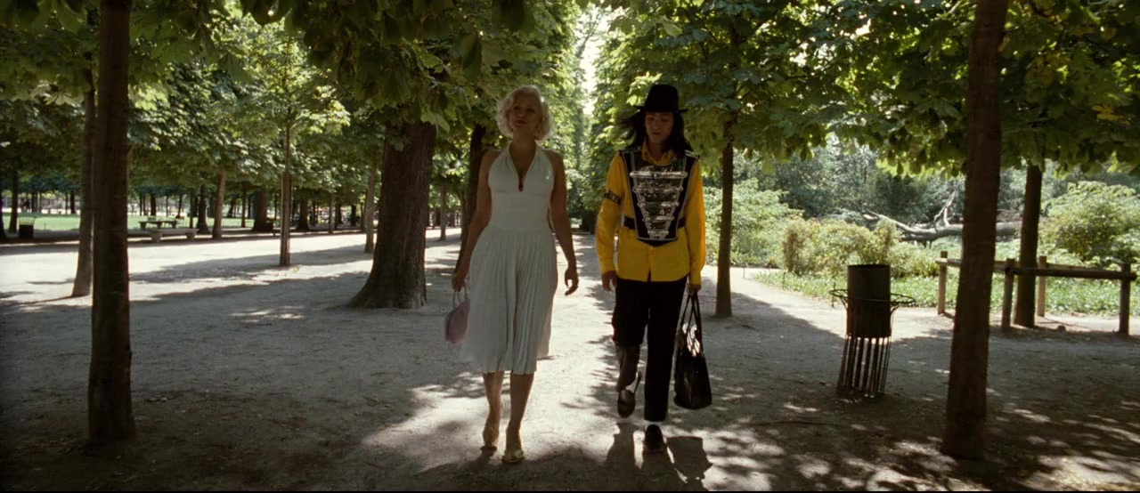 In Paris, a young American who works as a Michael Jackson lookalike meets Marilyn Monroe, who invites him to her commune in Scotland, where she lives with Charlie Chaplin and her daughter, Shirley Temple.