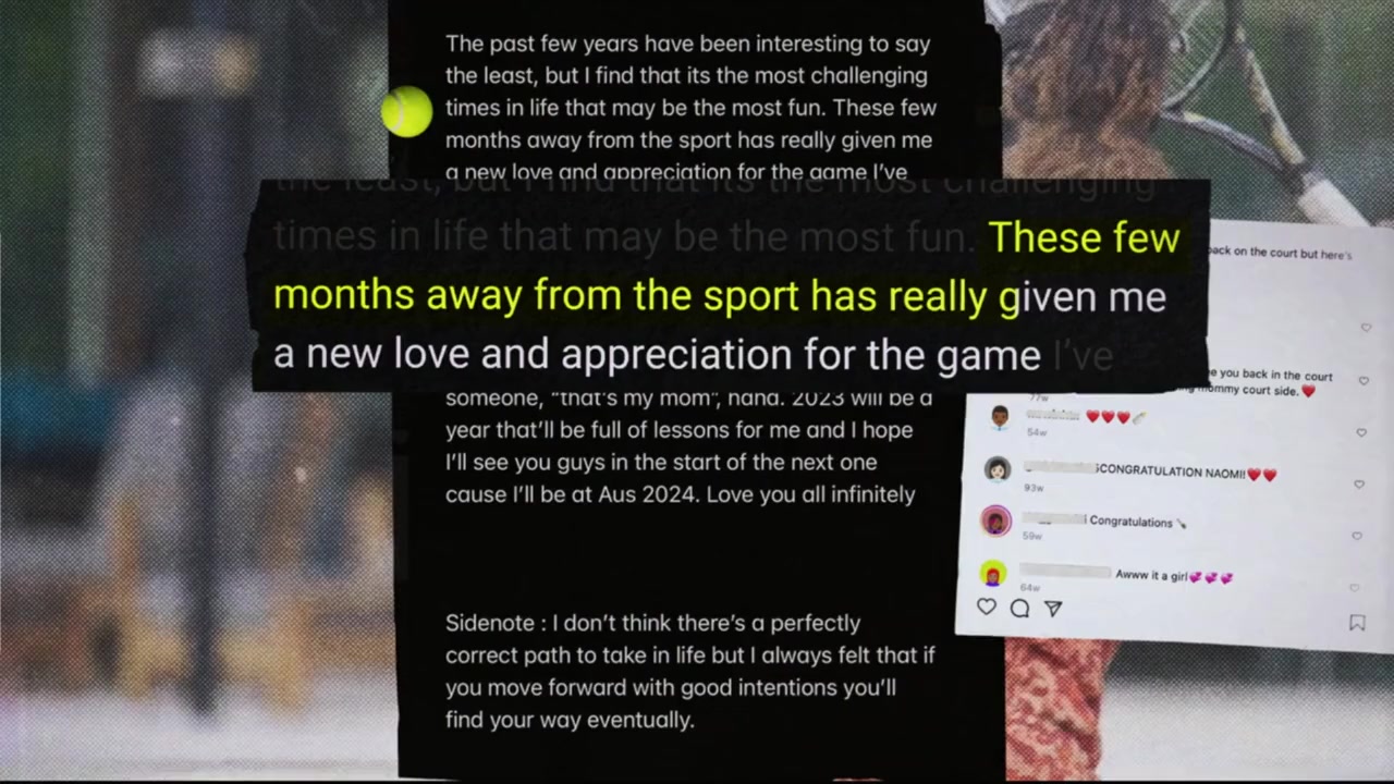 After having her daughter Shai, Osaka returns to competitive tennis, picking up her racket to resume her professional career.