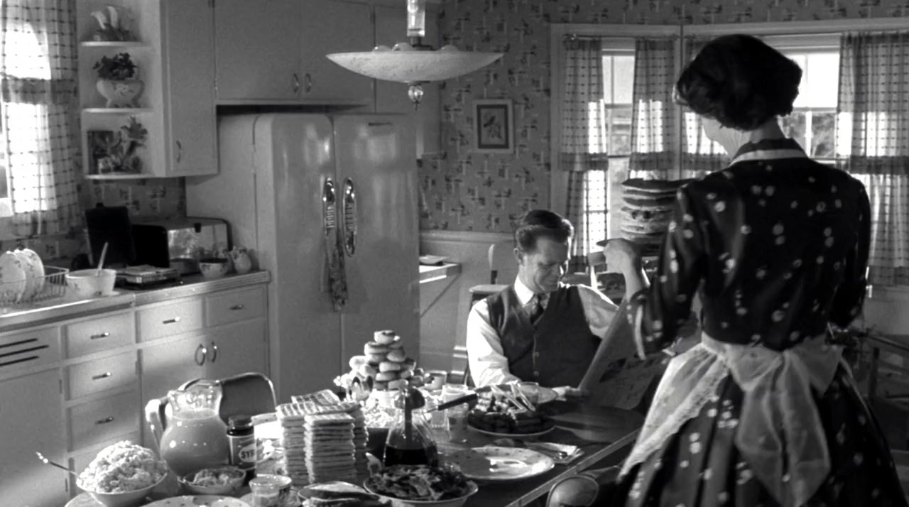 Geeky teenager David and his popular twin sister, Jennifer, get sucked into the black-and-white world of a 1950s TV sitcom called "Pleasantville," and find a world where everything is peachy keen all the time. But when Jennifer's modern attitude disrupts Pleasantville's peaceful but boring routine, she literally brings color into its life.