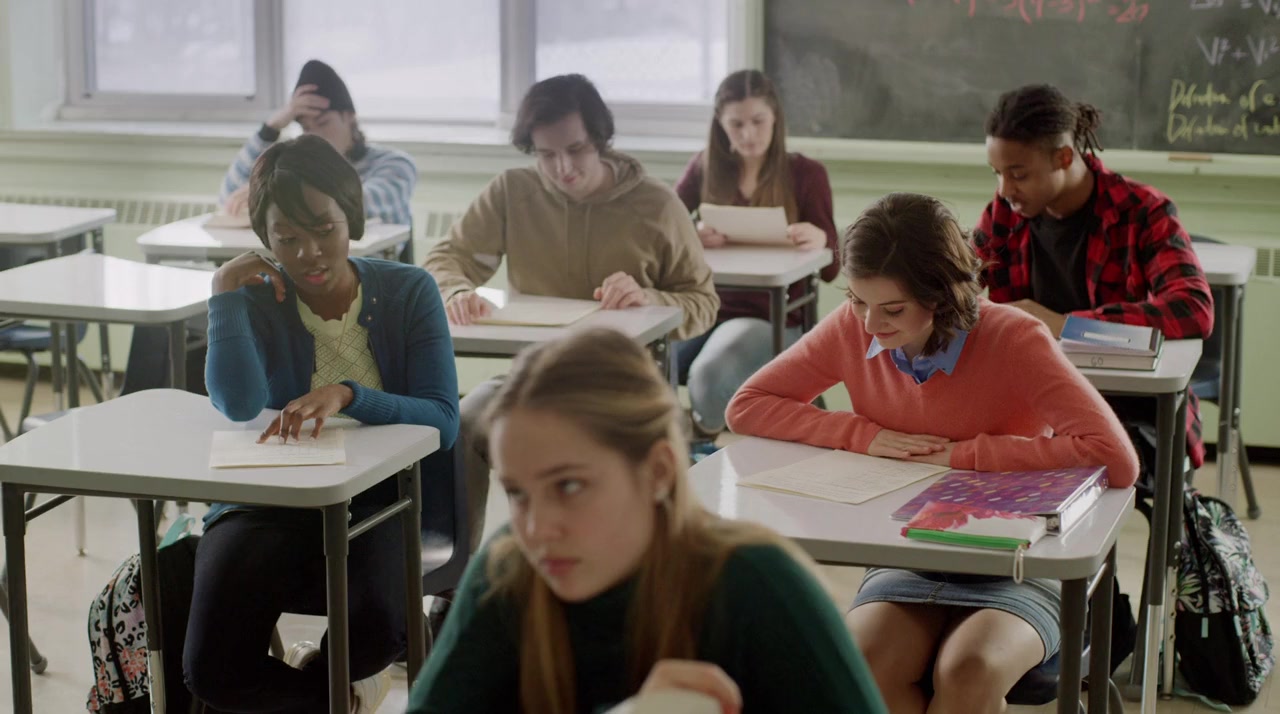 Tricked into a compromising situation, a high school senior thinks she can stop her cousin's blackmail by taking her college entrance exam for her, but soon learns her cousin has even darker plans for her