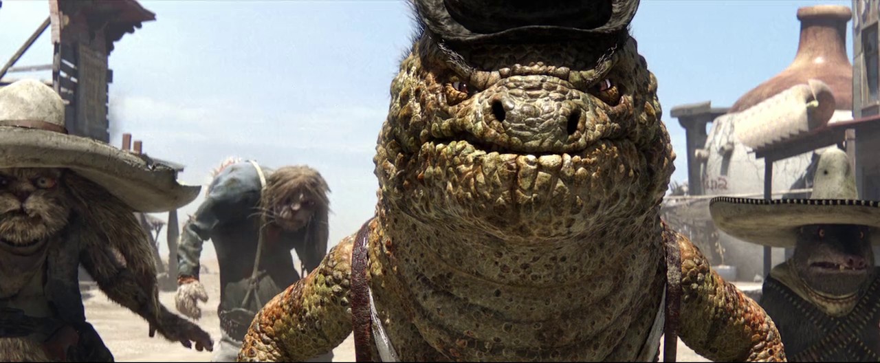 Music is solid and whilst not up the standards of some older Western films like Good the bad and the ugly it's still quite good. I liked the actual cinematography of the film as well, how Rango and Beans stood out in almost every seen, compared to the drabness of the drabness of the town Rango is rather colourful.