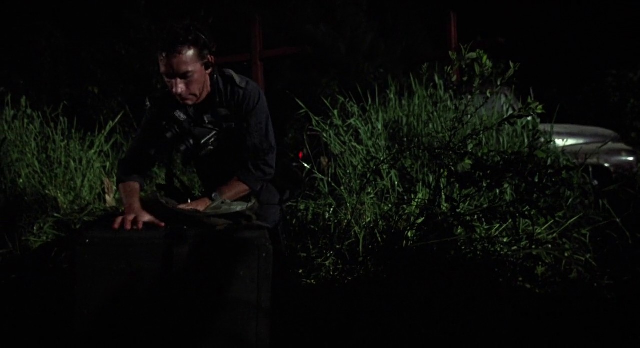 Five men heist the Camp Pendleton payroll and kidnap a pilot and his daughter, who are forced to fly them to Mexico. Enroute a double cross has one of the thieves parachute with the loot into an abandoned farm surrounded by strange scarecrows. The rest of the team jump after their loot and their former partner. Everything happens during the course of one very dark night.