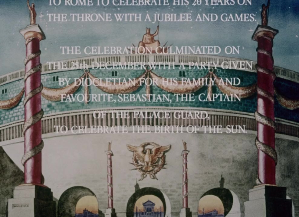 Rome, AD 303. Emperor Diocletian demotes his favourite, Sebastian, from captain of the palace guard to the rank of common soldier and banishes him to a remote coastal outpost where his fellow soldiers, weakened by their desires, turn to homosexual activities to satisfy their needs. Sebastian becomes the target of lust for the officer Severus, but repeatedly rejects the man's advances. Castigated for his Christian faith, he is tortured, humiliated and ultimately killed.