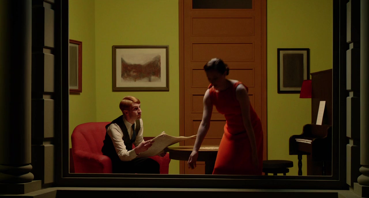 A series of snapshots from the life of a fictional actress named Shirley serves to weave together thirteen paintings by Edward Hopper (e.g. "Office at Night", "Western Motel", "Usherette", "A Woman in the Sun") into a fascinating synthesis of painting and film, personal and political history. Each station in Shirley’s professional and private life from the 1930s to 1960s is precisely dated: It is always August 28/29 of the year in question, as the locations vary from Paris to New York to Cape Cod.