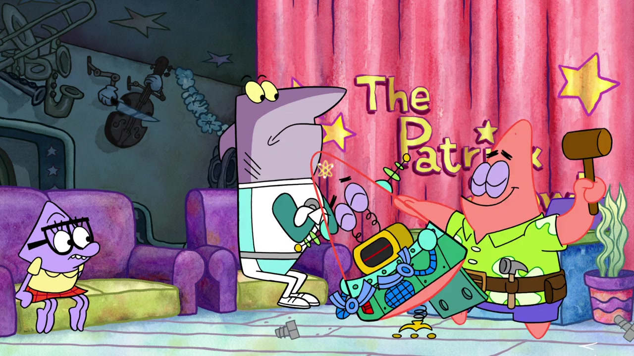 Tom Kenny as French Narrator / Ouchie / Slappy / Audience / Mummies / Virtual Pedestrians / SpongeBot / Mirror SpongeBot / RoboGary / Pedestrian Robots / SpongeBob / Boy Camper #1 / Campers / Kid / Old Klopnodian Man / Customers