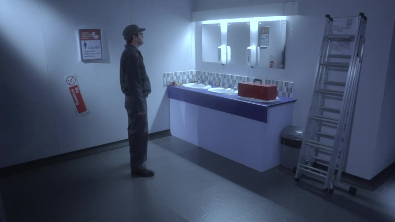 A janitor gets trapped in a women's restroom and encounters an all-out attack by a horde of zombies.