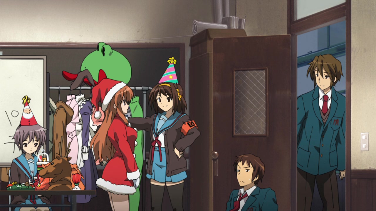 A week before Christmas, Kyon wakes up in a world where the SOS Brigade doesn't exist. Mikuru and Yuki don't recognize him, and Haruhi and Itsuki seem to have vanished.