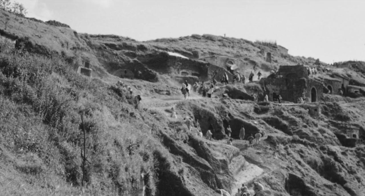 Along a rocky, barren coastline, Jesus begins teaching, primarily using parables. He attracts disciples; he's stern, brusque, and demanding. His parables often take on the powers that be, so he and his teachings come to the attention of the Pharisees, the chief priests, and elders. They conspire to have him arrested, beaten, tried, and crucified, just as he prophesied to his followers.