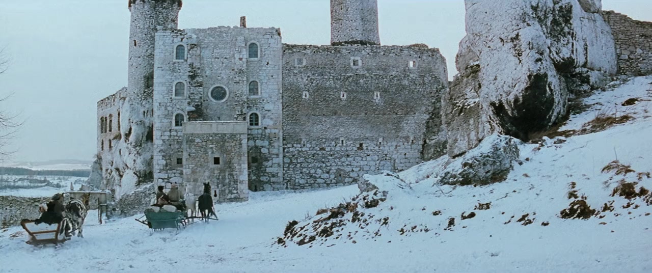 A winter day at a Polish castle, half owned by a fatalistic notary and half by a volcanic old soldier's niece. The old soldier, Cupbearer, and the notary are sworn enemies, which may doom the love between the niece, Klara, and the notary's son, Waclaw. On this day, the tongue-tied Cupbearer asks a braggart courtier, Papkin, to sue on his behalf for the hand of the widow Hanna. Papkin succeeds and