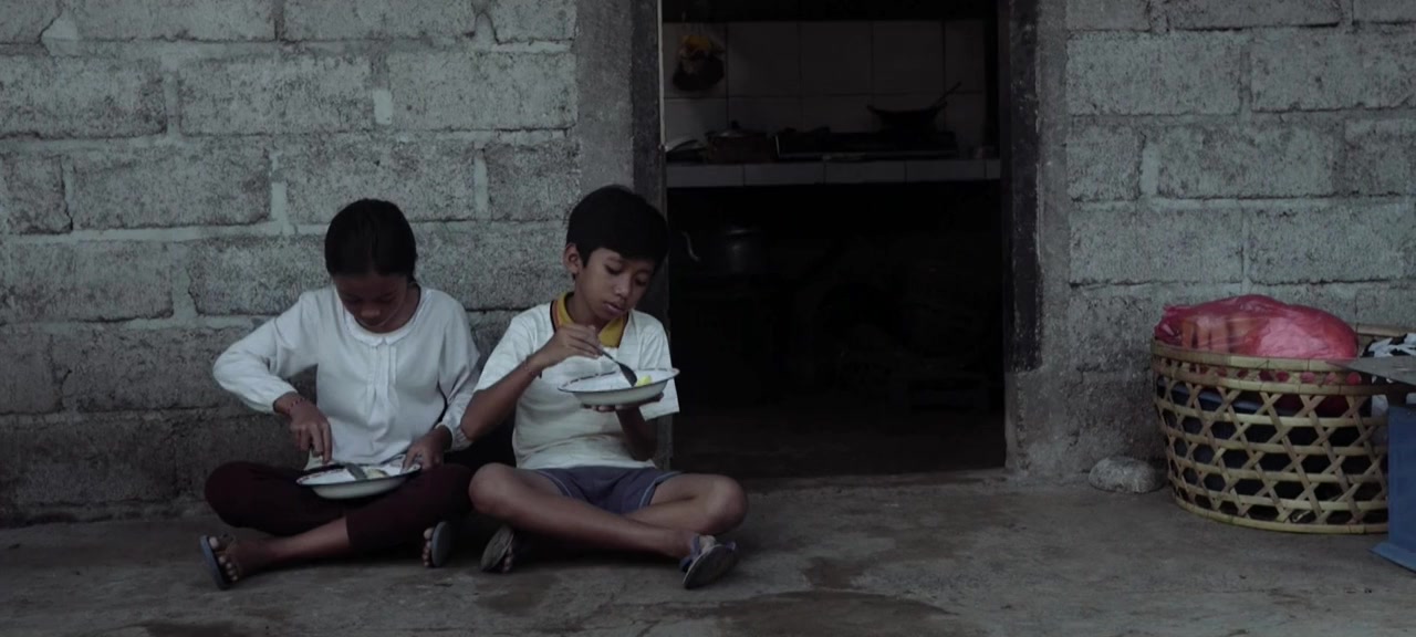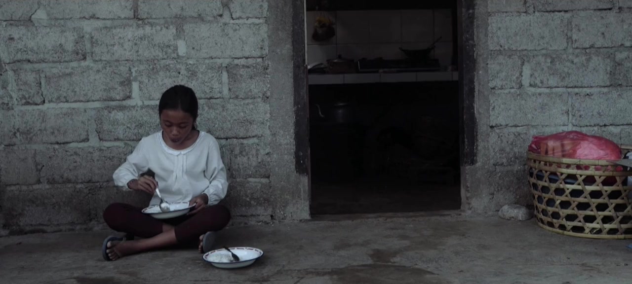 Tantra and Tantri are inseparable. When they secretly steal eggs from the family’s sacrificial offering, Tantri always gets the whites and Tantra the yolks. One day, however, the yolk is missing, as is Tantra. Her brother gravely ill and in hospital, Tantri starts slipping into magical parallel worlds, approaching the inevitable farewell through costumes, body paint and dance. When at one point Tantri’s mother washes the paint from her face, it is as if tenderly to expel the illusion that things can remain as they are. In long dream sequences and against the background of the Balinese philosophy of sekala – the seen – and niskala – the unseen – Andini relates how one ten-year-old girl deals with parting and grief.
