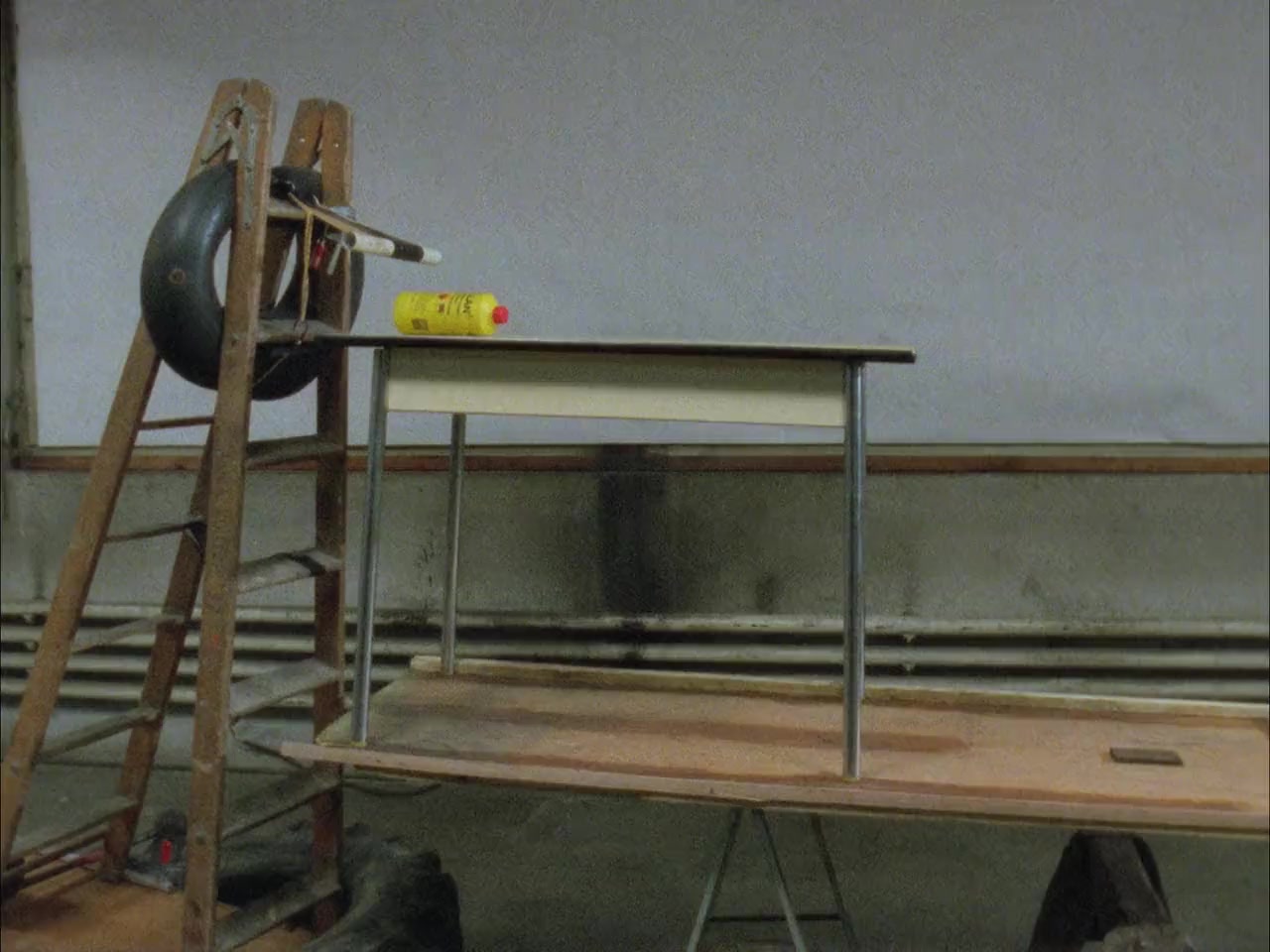Artists Peter Fischli and David Weiss create the ultimate Rube Goldberg machine. The pair used found objects to construct a complex, interdependent contraption in an empty warehouse. When set in motion, a domino-like chain reaction ripples through the complex of imaginative devices. Fire, water, the laws of gravity, and chemistry determine the life-cycle of the objects. The process reveals a story concerning cause and effect, mechanism and art, and improbability and precision, in an extended science project that will mesmerize the mind.