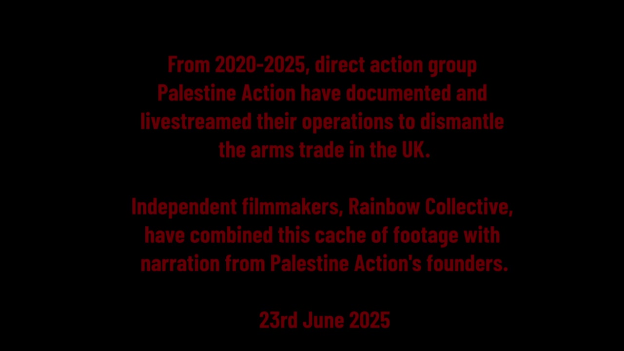 Through real-time bodycam and phone footage, frontline activists take audiences along on their audacious raids to tear down arms factories around the UK. Since 2020, direct action group Palestine Action have documented their operations to dismantle the companies and infrastructure supplying weapons to the ongoing genocide in Gaza.