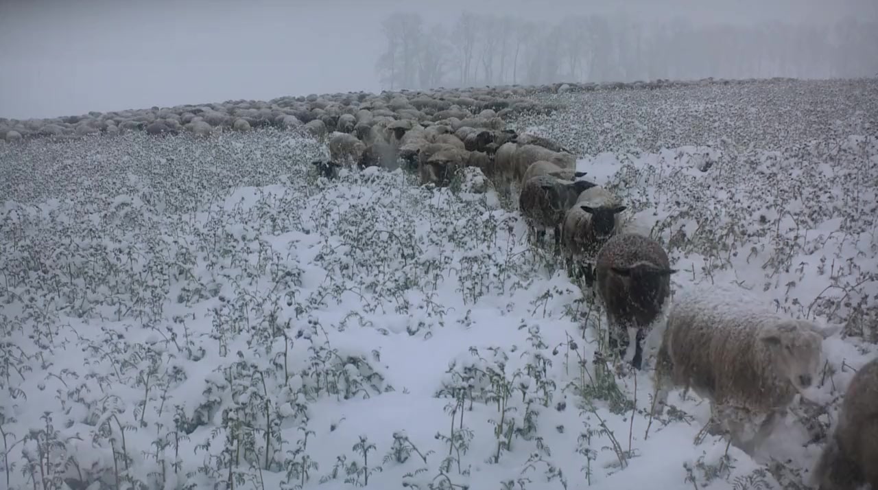 Pascal, 53, and Carole, 28, are shepherds. In the month of November 2010, they embark on their long winter transhumance: four months during which they will have to cover 600 km in the Swiss-French region, accompanied by three donkeys, four dogs and eight hundred sheep. An exceptional adventure is about to begin: they brave the cold and the bad weather day in day out, with a canvas cover and animal skins as their only shelter at night. This saga reveals a tough and exacting profession, requiring constant improvisation and unflinching attention to nature, the animals and the cosmos. An eventful journey with surprise encounters, moving reunions with farmer friends, nostalgic figures of country life that is shrinking away fast. Αn adventure film, a contemporary road movie, a reflection of our current world, which takes us back to our roots and our inner questions.