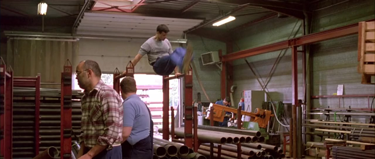 Yamakasi - Les samouraïs des temps modernes is a 2001 French movie written by Luc Besson. It demonstrates the skills of the Yamakasi, a group of traceurs who battle against injustice in the Paris ghetto. They use parkour to steal from the rich in order to pay off medical bills for a kid injured copying their techniques.